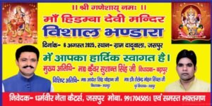 उत्तराखण्ड: जनपद ऊधम सिंह नगर के जसपुर क्षेत्र के गांव गोरा फार्म-जादू वाला स्थित मां को हिडम्बा देवी के ऐतिहासिक मंदिर पर 6 अगस्त 2025 को विशाल वार्षिक भंडारे का आयोजन किया जाएगा ।