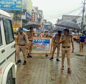 पुलिस इंचार्ज कोतवाल जावेद मलिक के नेतृत्व में वर्षा के दौरान भी छाता लगाकर यातायात व्यवस्था को सुचारु बनाने में जुटी रही । इंचार्ज कोतवाल जावेद मलिक लगातार नगर का भ्रमण कर यातायात व्यवस्था का जायजा लेते रहे और पुलिस को आवश्यक दिशा निर्देश देते रहे ।