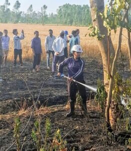 जसपुर क्षेत्र के गांव रामनगर वन में गेहूं के खेत में लगी आग, मची अफ़रा-तफ़री